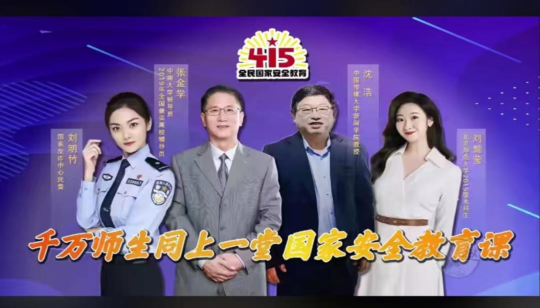2023�4�15日是我国第八个全民国家安全教育日。教育部围绕“贯彻总体国家安全观,增强全民国家安全意识和素养,夯实以新安全格局保障新发展格局的社会基础”这一主题,策划组织了形式多样的宣传教育活动。在教育部思想政治工作司、公安部刑事侦查局指导下,中国大学生在线于4�14日面向全国高校师生推�的“千万师生同上一堂国家安全教育课�便是主题教育活动之一,此次活动可以通过扫码在公安部刑侦局、国家反诈中心视频号等观看课程直播,�院学子汇集云端,通过网络直播形式积极参与学习�