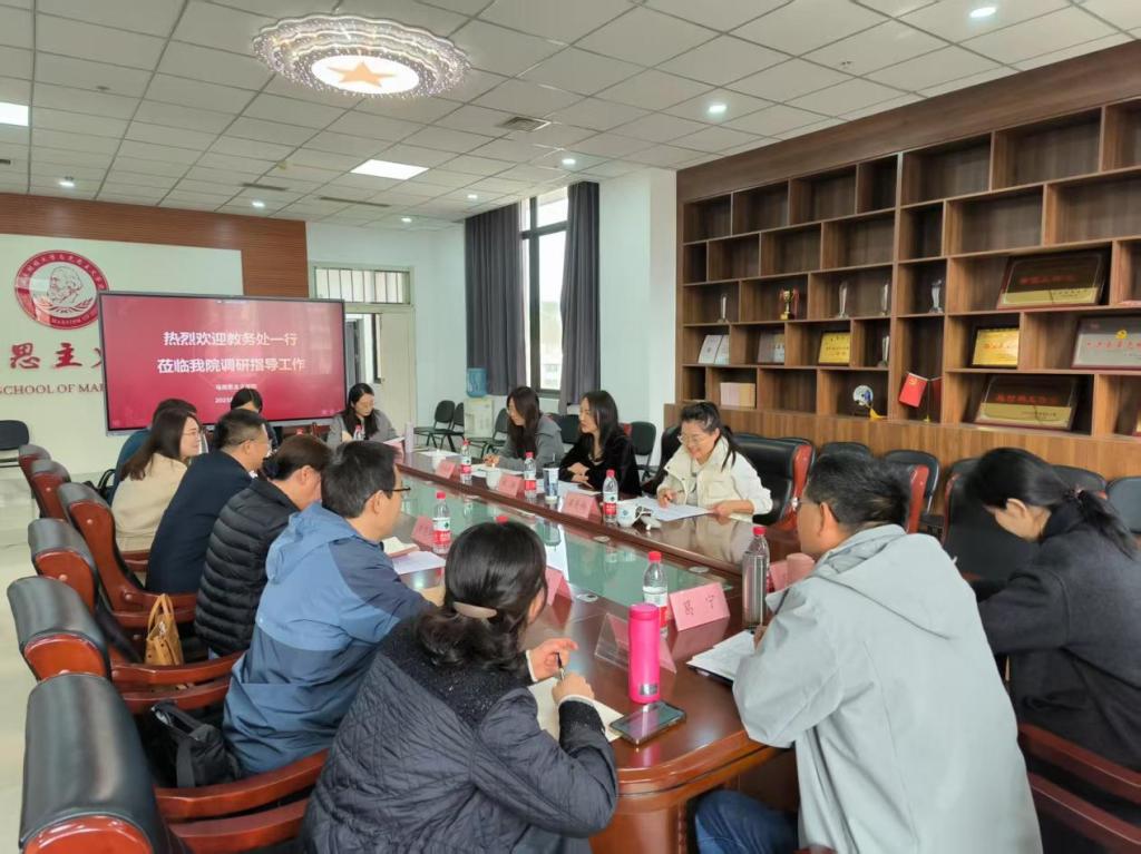 3�12日下午,教务处副处长张澜一行莅临我院,在图书馆606会议室开展调研交流。学院党委书记刘国强、副院长王敏、各教研室主任及教学骨干代表参与交流�