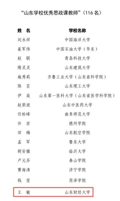 王敏获“山东学校优秀思政课教师”称�