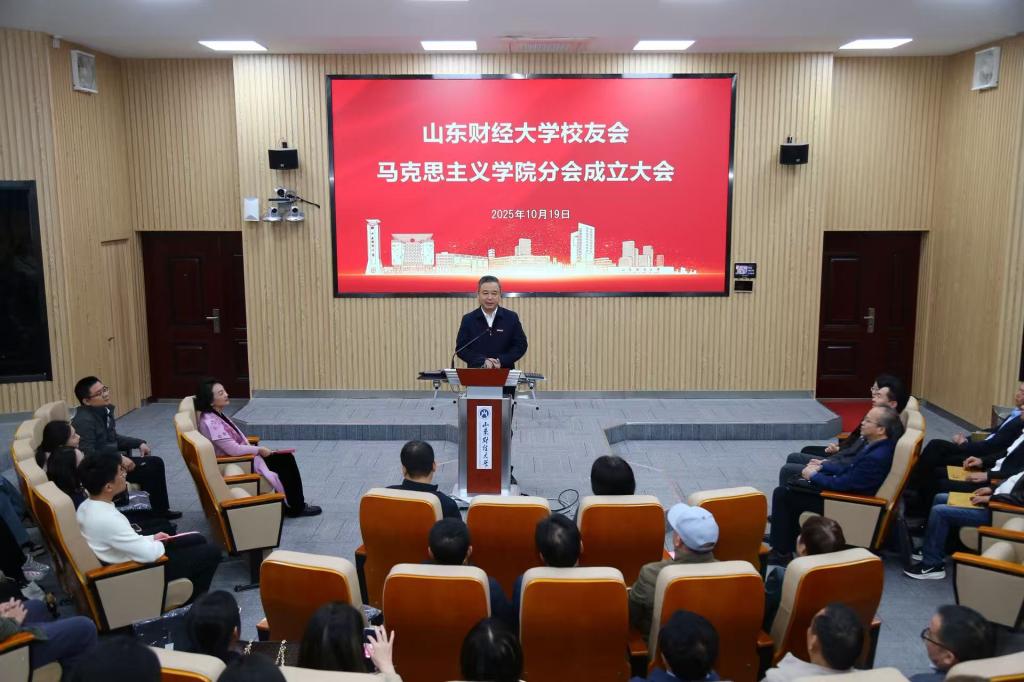10鏈�19鏃ヤ笂鍗堬紝灞变笢璐㈢粡澶у鏍″弸浼氶┈鍏嬫濅富涔夊闄㈠垎浼氭垚绔嬪ぇ浼氬湪鐕曞北鏍″尯閫稿か妤�103澶氬獟浣撴暀瀹や妇琛屻傛牎鍏氬涔﹁鏌ョ帀鍠溿佸壇鏍¢暱寮犵孩闇炰笌鏉ヨ嚜鍏ㄥ浗鍚勫湴鐨勬牎鍙嬩唬琛ㄥ強椹厠鎬濅富涔夊闄㈡暀鑱屽伐銆侀浼戞暀甯堜唬琛ㄣ佸鐢熶唬琛ㄧ瓑120浣欎汉娆㈣仛涓鍫傦紝鍏卞彊鎯呰皧锛屽悓缁樺彂灞曟柊绡囥備細璁敱椹厠鎬濅富涔夊闄㈠厷濮斾功璁板垬鍥藉己涓绘寔銆�
