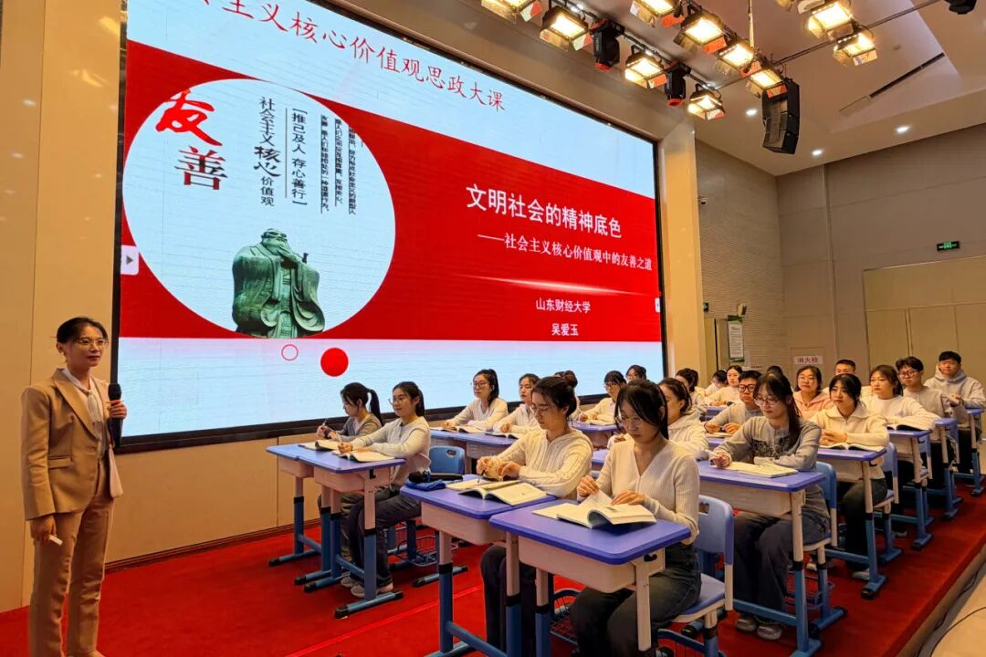 11月18日,活动由济南市委教育工作领导小组、山东大学等单位联合主办,济南市历下区教体局和山东财经大学马克思主义学院承办的“友善之光 照亮成长”社会主义核心价值观思政大课活动在山东省实验中学德润校区举行。马克思主义学院党委书记刘国强出席活动并致辞,王敏副院长进行点评。