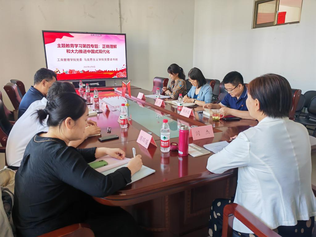 6鏈�8鏃ヤ笅鍗堬紝椹厠鎬濅富涔夊闄㈠厷濮斿拰宸ュ晢绠$悊瀛﹂櫌鍏氬鑱斿悎缁勭粐鍙紑瀛︿範璐交涔犺繎骞虫柊鏃朵唬涓浗鐗硅壊绀句細涓讳箟鎬濇兂涓婚鏁欒偛璇讳功鐝紝浠モ滄纭悊瑙e拰澶у姏鎺ㄨ繘涓浗寮忕幇浠e寲鈥濅负涓撻杩涜绗洓娆¢泦浣撳涔狅紝閲嶇偣瀛︿範浜嗕範杩戝钩鎬讳功璁板湪瀛︿範璐交鍏氱殑浜屽崄澶х簿绁炵爺璁ㄧ彮寮鐝紡涓婄殑閲嶈璁茶瘽鍜屻婁腑鍥藉紡鐜颁唬鍖栨槸涓浗鍏变骇鍏氶瀵肩殑绀句細涓讳箟鐜颁唬鍖栥嬬瓑绡囩珷銆備細璁敱椹厠鎬濅富涔夊闄㈠厷濮斾功璁扮煶浼熶富鎸侊紝椹厠鎬濅富涔夊闄㈤瀵肩彮瀛愭垚鍛樸佸伐鍟嗙鐞嗗闄㈤瀵肩彮瀛愭垚鍛樺拰闂澃鍓暀鎺堝弬鍔犮�