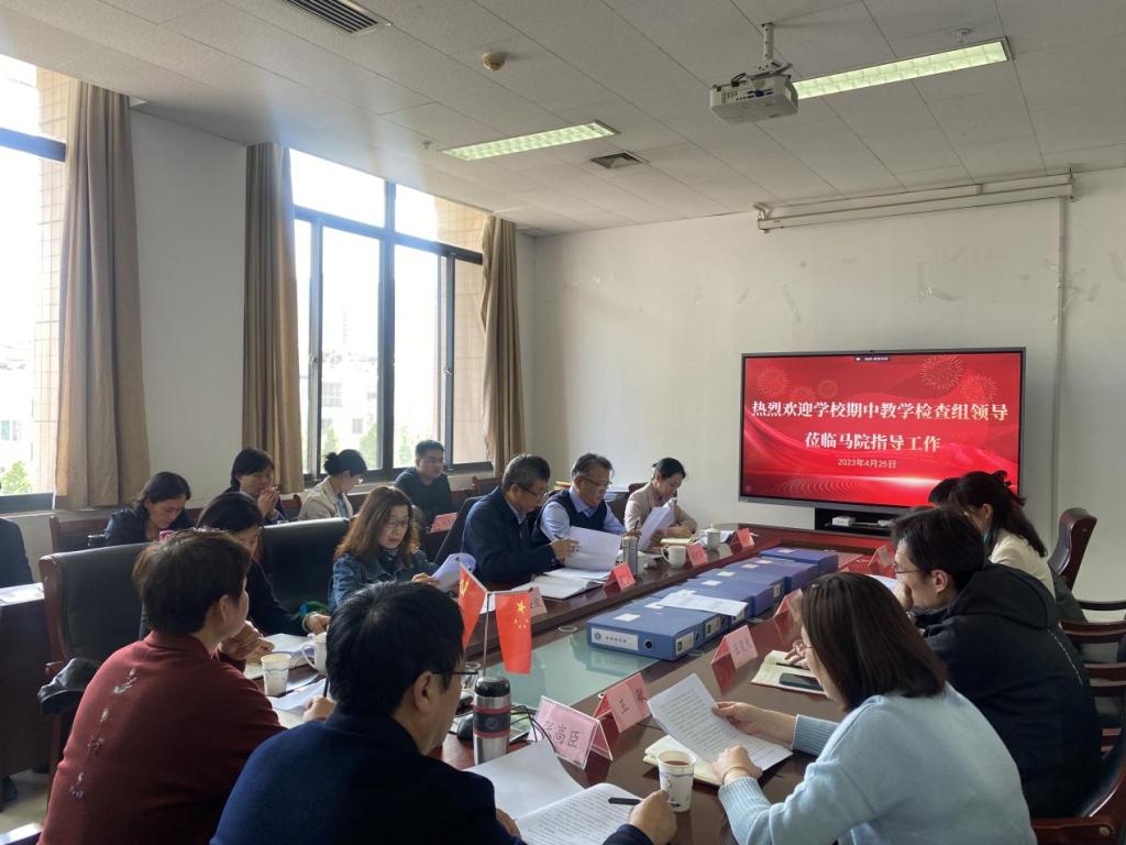4月25日下午,校教学检查组组长胡元木主任、教学督导史汝波教授、教务处孙德昌副处长、研究生院刘若斌副院长以及教师教学发展与评估中心徐春霞老师一行五人,来色色视频 进行期中教学检查及教师教学工作指导。色色视频 领导班子成员、学院督导组毛玉美教授及张高臣教授、教学秘书张雨荷老师、各教研室主任以及青年教师代表参加了会议。此次会议由徐莹院长主持。