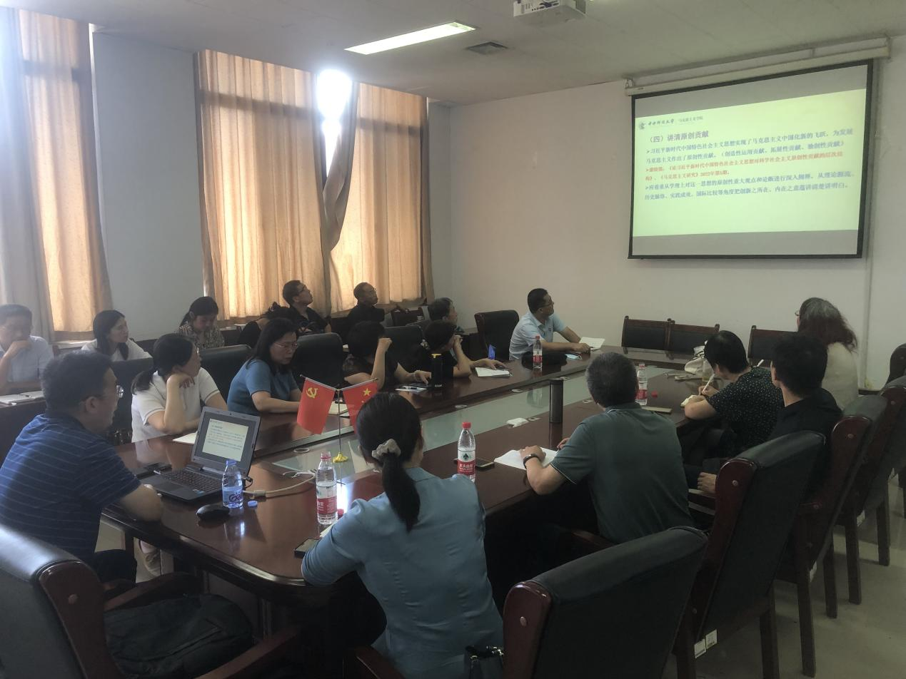 8�27日下午,中央财经大学马克思主义学院博士生导师、《高校马克思主义理论教育研究》副主编赵付科教授应我院邀请,在学�606会议室作题为�<习近平新时代中国特色社会主义思想概论>教学专题设计的几点思考》的学术报告。讲座由院长徐莹主持,副院长侯继迎、王敏以及学院部分师生聆听了讲座�