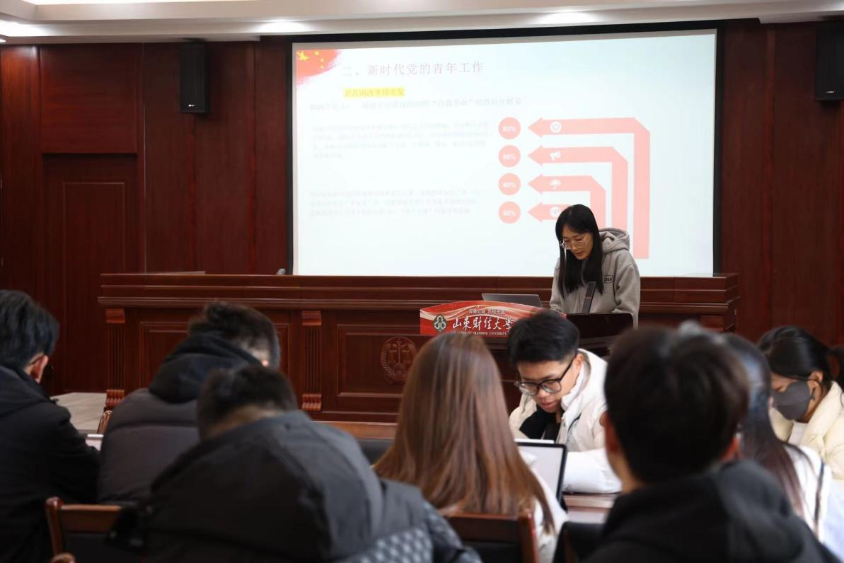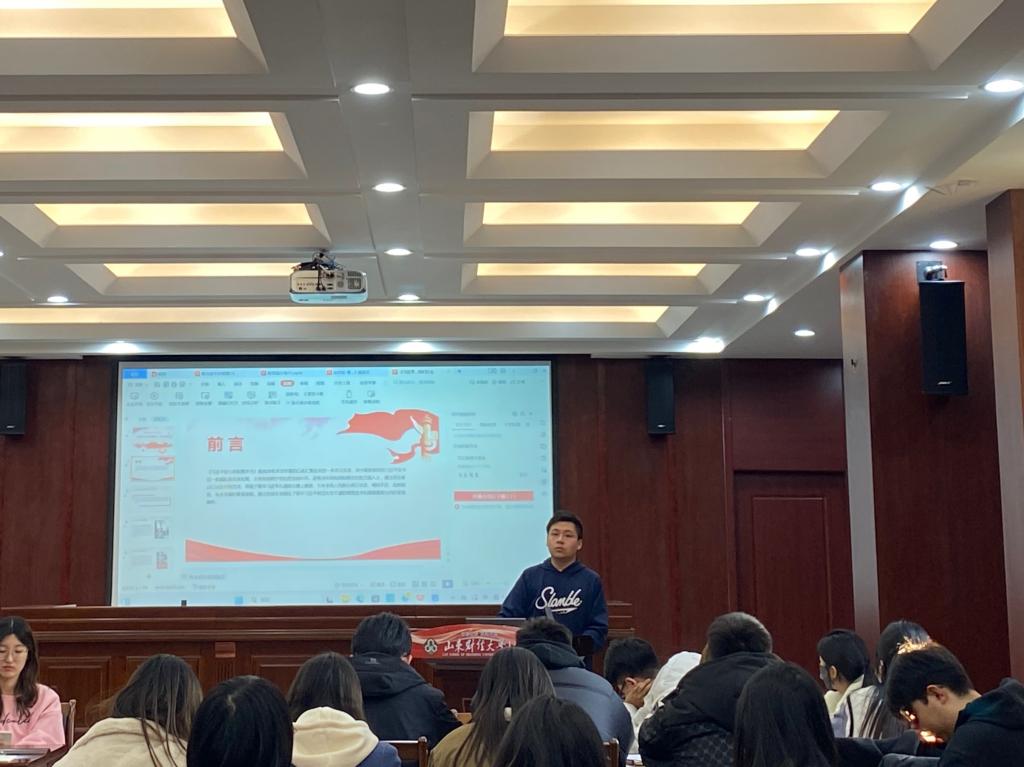最后,各小组代表根据阅读篇目,结合个人生活实际、学院特色活动、社会实践经历、志愿服务活动、团员主题教育等主题进行分享。马克思主义学院的宋旭衡同学从青年习近平矢志不渝的理想追求和爱国为民的家国情怀出发,分享了学习《习近平的知青岁月》的感悟。来自管理科学与工程学院和法学院的同学也踊跃登台,围绕《青年运动的方向》《论党的青年工作》进行交流分享。