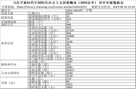 銆婁範杩戝钩鏂版椂浠d腑鍥界壒鑹茬ぞ浼氫富涔夋濇兂姒傝銆嬭浠�2022骞寸瀛e鏈熷崟鐙紑璇句互鏉ワ紝渚垮湪娉涢泤骞冲彴鍏ㄩ潰瀹炶娣峰悎寮忔暀瀛︺傜嫭绔嬪紑璇惧悗绔嬪埢寤鸿鑷繁鐨勫湪绾垮钩鍙帮紝骞跺悓姝ュ悜鏍″唴澶栧笀鐢熷紑鏀撅紝鏈鏈燂紙2023骞寸瀛o級鏄3娆″紑璇俱傜洰鍓嶏紝鍦ㄧ嚎骞冲彴寤鸿宸插熀鏈畬澶囷紝鍖呮嫭鏁欏瑙嗛銆佹暀瀛﹁浠躲佲滄偊璇荤粡鍏糕濄佲滅悊璁哄墠娌库濄佺珷鑺傛祴璇曘佸崟鍏冩祴璇曘佽瘯棰樺簱绛夌嚎涓婅祫婧愶紝鑳藉婊¤冻鏁欏笀鏁欏鍜屽鐢熷涔犵殑闇瑕併�